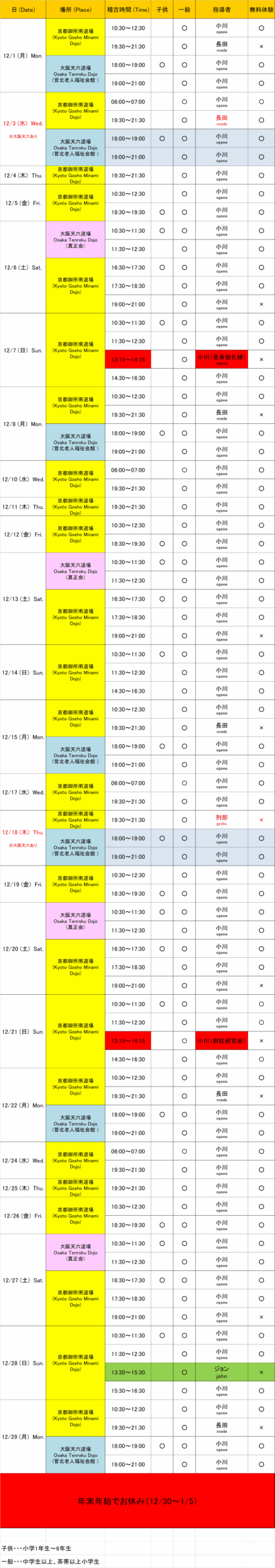 – At the Goshominami Dojo on Mondays from 19:30 to 21:30, Ogawa will be absent, so only observation is possible, and experiencing is not available.