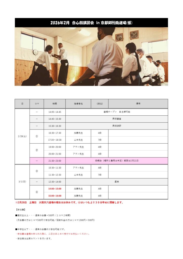 – At the Goshominami Dojo on Mondays from 19:30 to 21:30, Ogawa will be absent, so only observation is possible, and experiencing is not available.